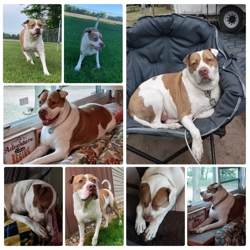 “We got Fletcher from you 3 1/2 years ago. We had just lost our Emma Girl to cancer and after three months, I couldn’t handle not having a fur baby. I applied to 4 different rescues and he was the only one we heard back on. So we knew it was meant to be.” Since joining his family, Fletcher has been living his best life. Whether it’s camping, running around his acre and a half of land, or going for rides in the big truck, Fletcher is always on an adventure! He’s spoiled with treats, stuffed animals, and, of course, lots of love.