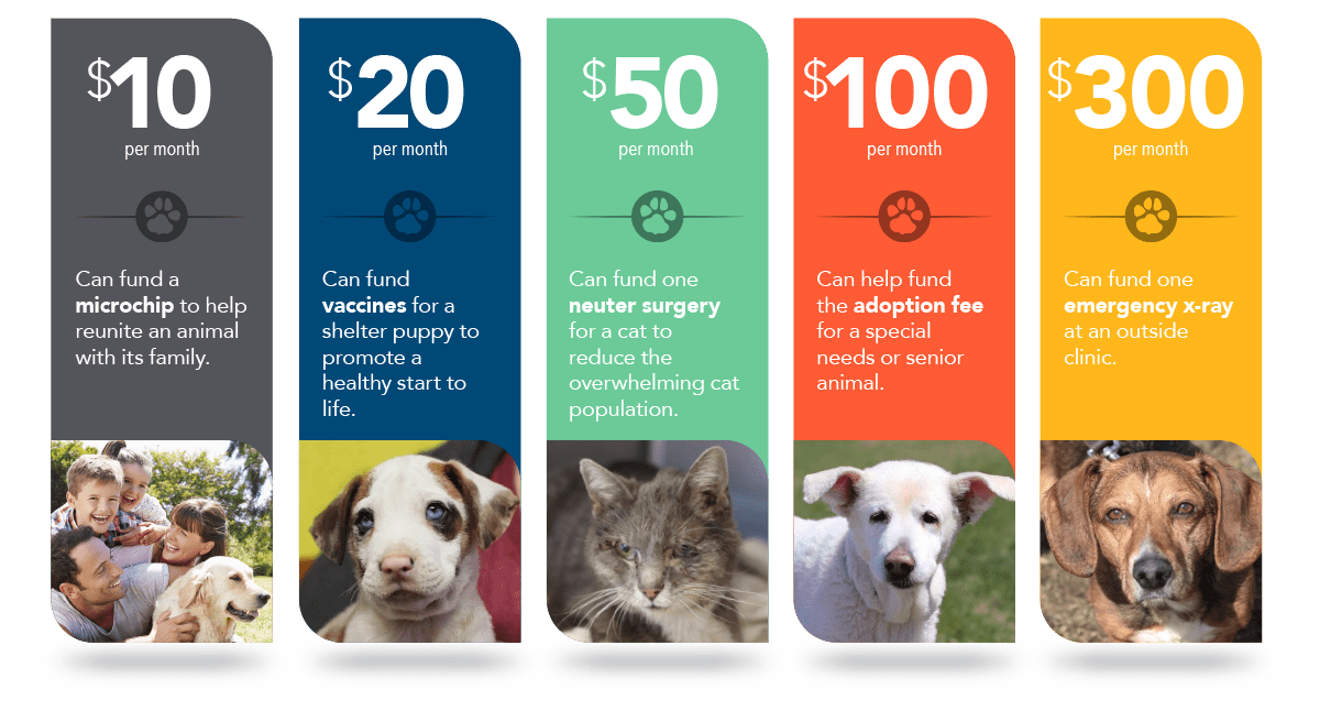 To sponsor an animal in our care, select a pet from our adoptable pets list and choose a sponsorship level below.